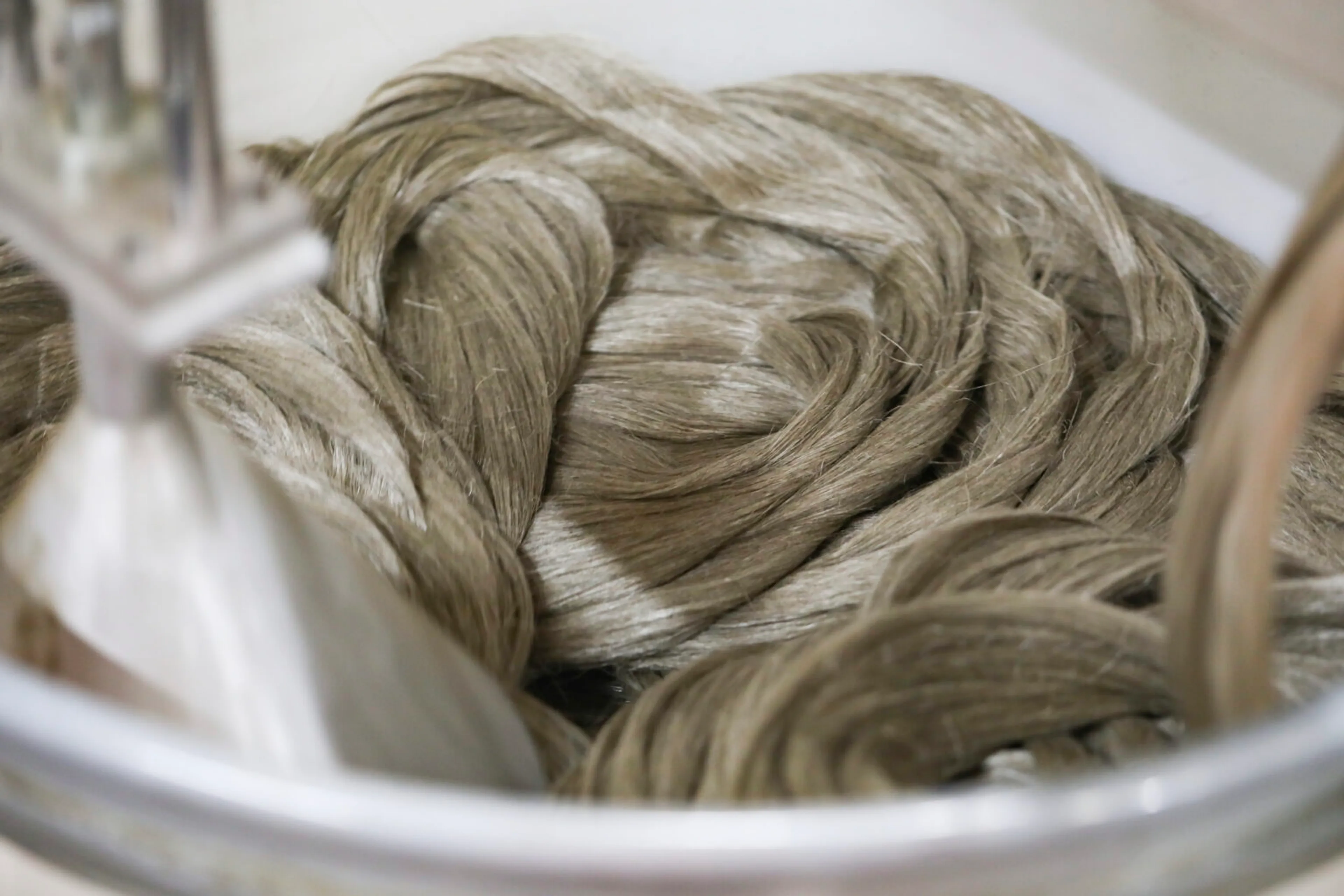 After scutching, the flax is combed and arranged into strips