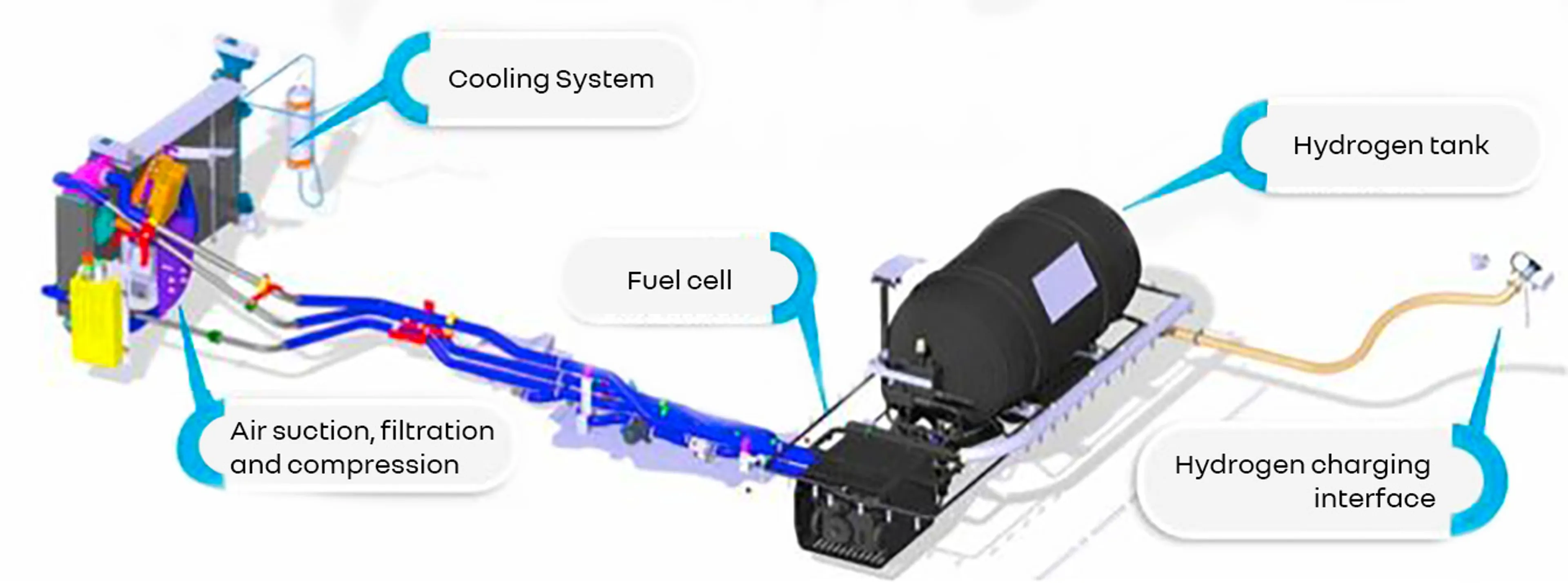 Bear in mind that the hydrogen atom, two of which are required to make up the dihydrogen (H2) molecule, is one of the simplest and lightest natural elements on the periodic table (the classification which lists all the chemical elements present on Earth.) It has very low volume density. So, in order to obtain the quantity of hydrogen needed to power a vehicle, it is necessary to store a considerable amount in large tanks at high pressure.