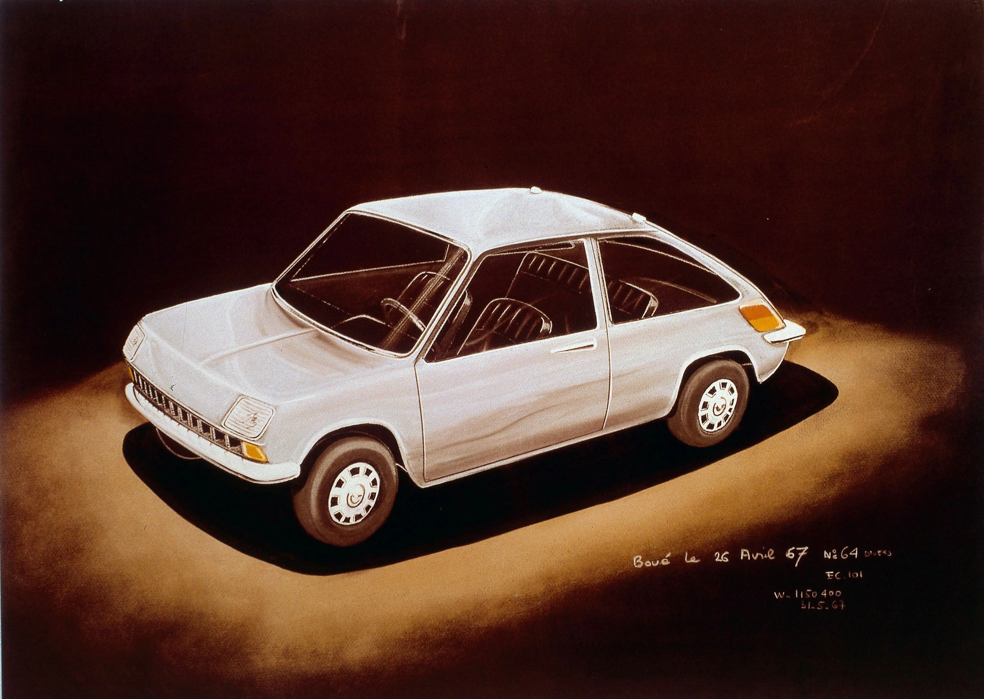 Then, the designers moved on to a graphic palette to define proportions, contours, the distance between the headlights, to find the expression, the smiling look of the 1970s R5.