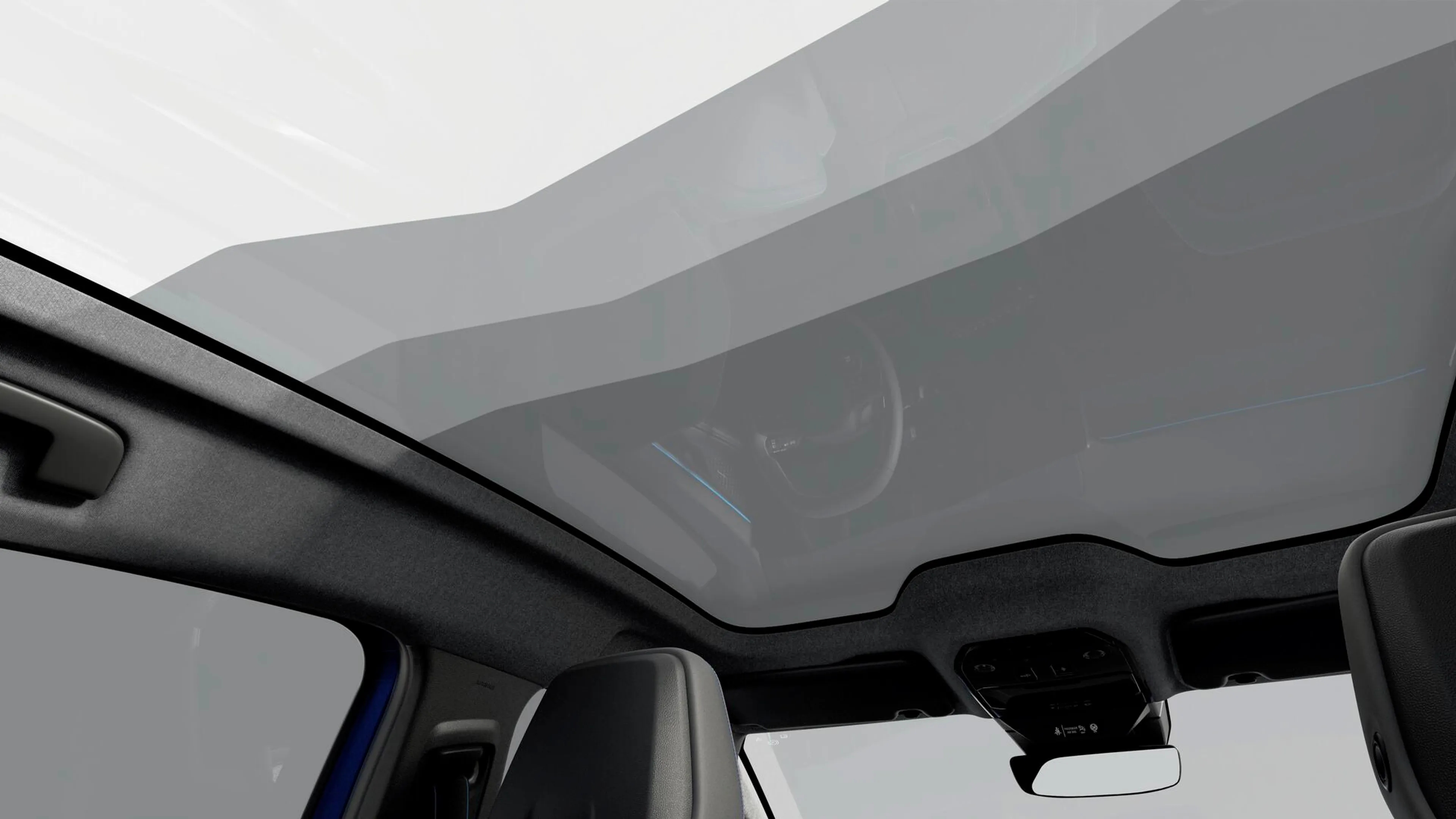 Simple: you operate it using a button by the ceiling light, which the driver and passenger in the front can reach, or voice-operate it via Google Assistant – which all passengers, including the ones in the back, can do.