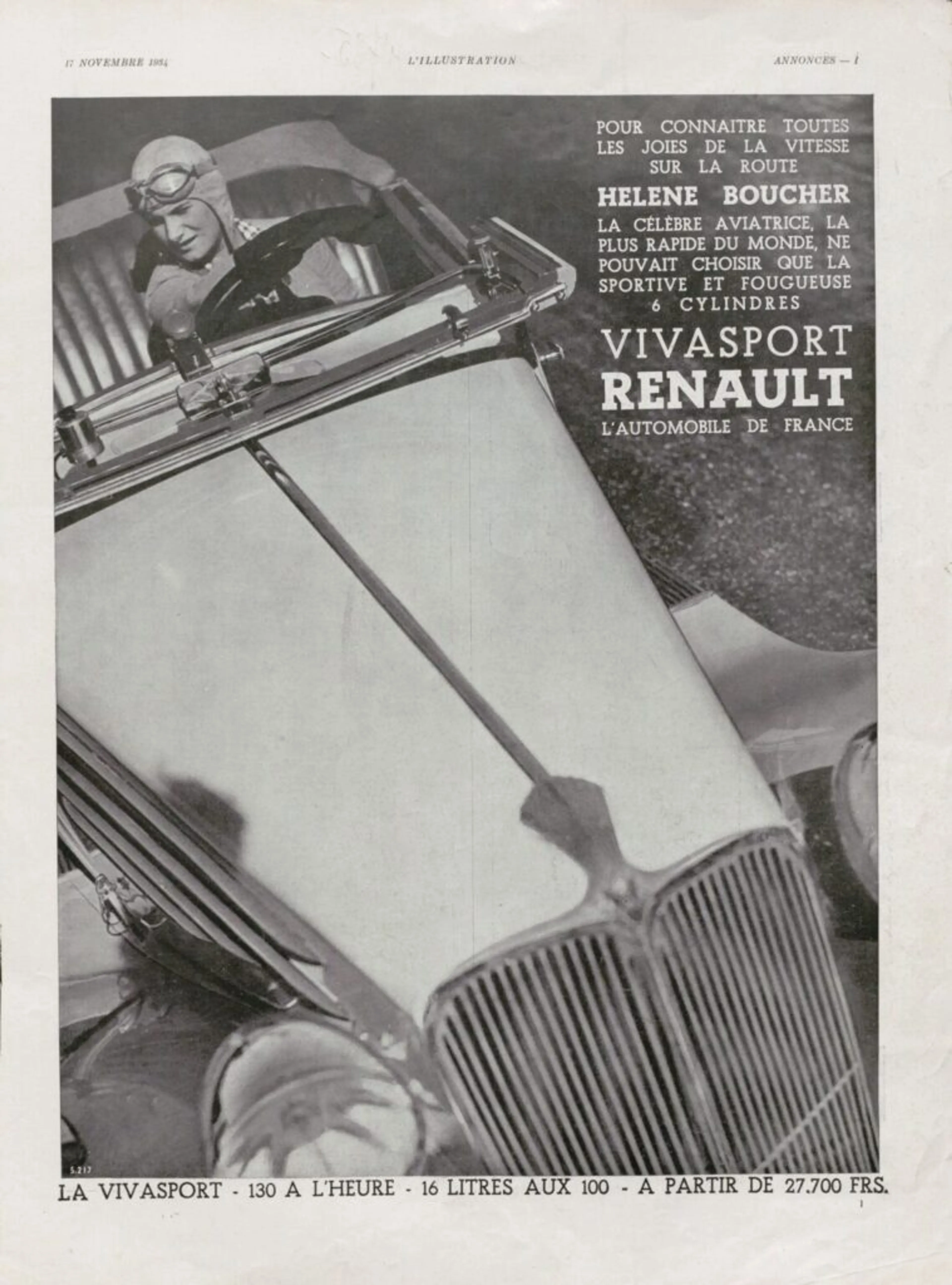 The iconic form of the Caudron Renault Rafale was designed by Marcel Riffard. The ingenious aeronautical engineer also designed cars for Renault, such as the Nervasport and the Viva Grand Sport. The latter was an extremely luxurious model powered by a 6-cylinder straight engine. In adverts at the time Hélène Boucher, then contracted to Renault, sang the praises of driving the Viva Grand Sport.